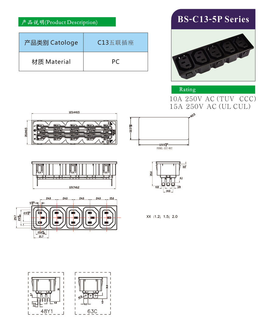 IEC C13 五聯(lián)電源插座AC卡式插座品字插座 PDU電源插座單元