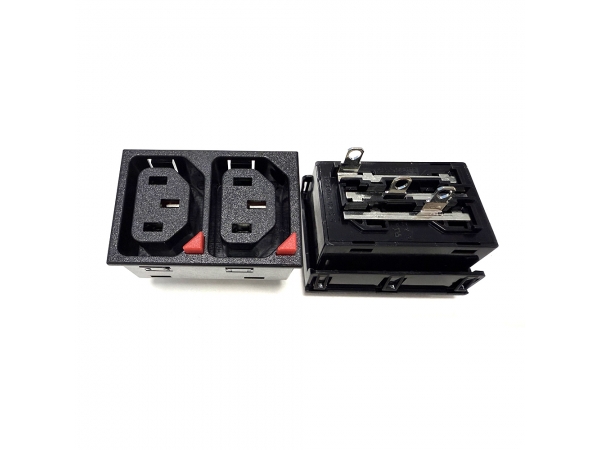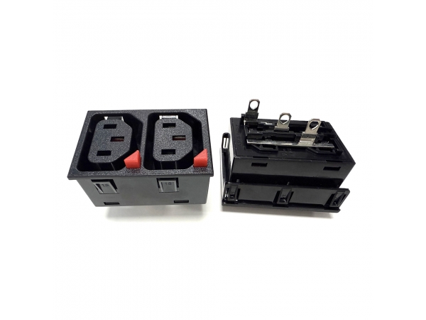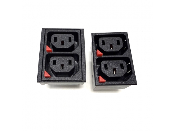 C13兩聯(lián)按鍵防脫插座,可帶外框直接卡型材,也可不帶外框直接卡板金。