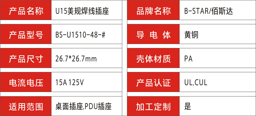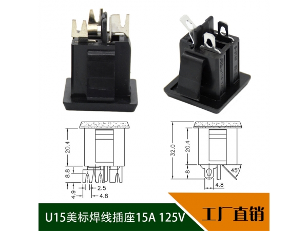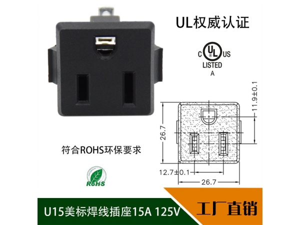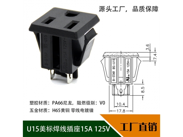 BS-U1510美規(guī)15A 125V焊線式小插座
